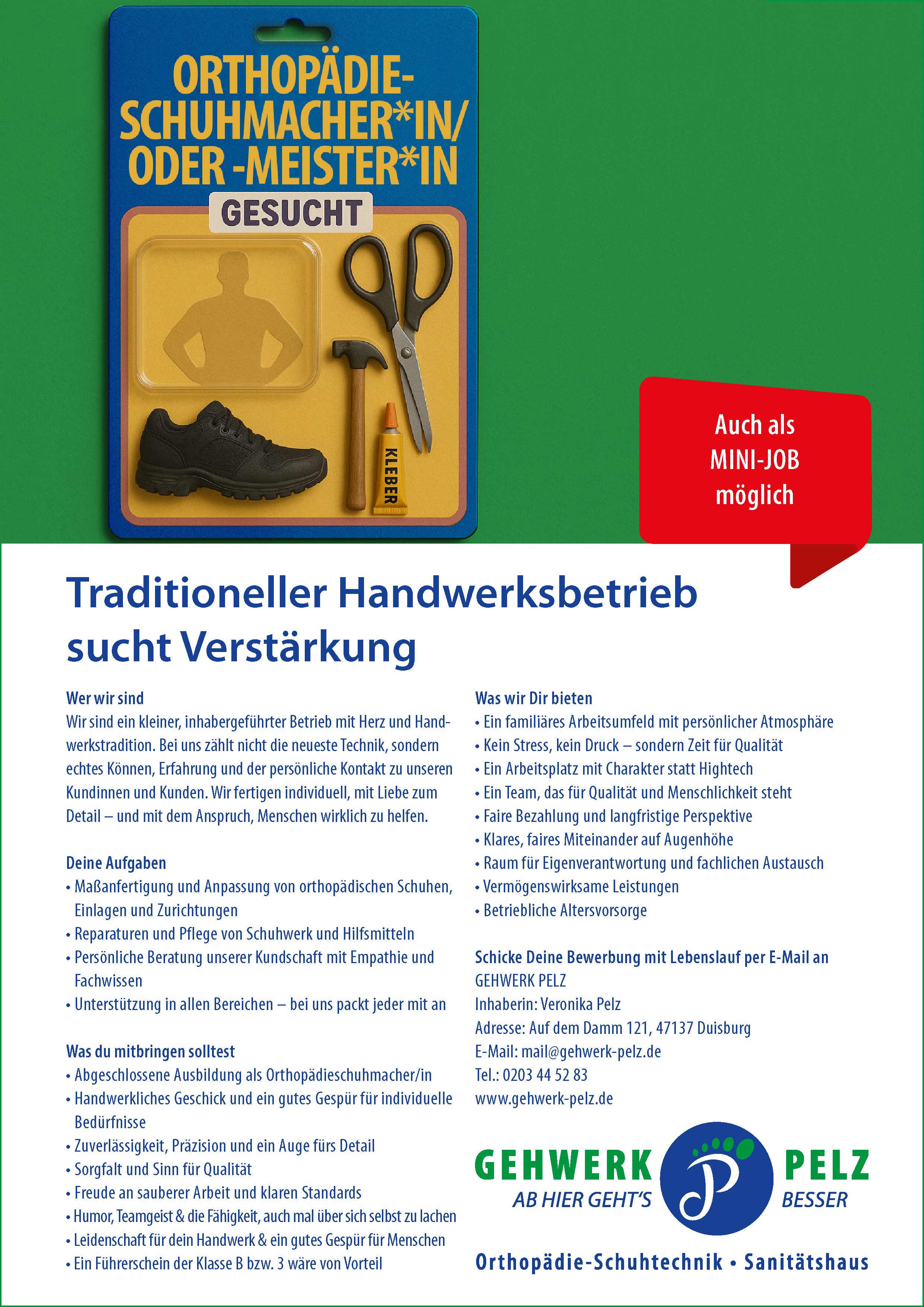 Für 2026 bieten wir eine Ausbildung zum Orthopädieschuhmacher*in für Bewerber*innen an. Freude am Handwerk und Lust etwas zu schaffen, dass sollten unsere Auszubildenden haben. Das Fachwissen und das Know-How geben wir dann aus unseren Händen dazu. Was macht den Beruf des Orthopädieschuhmachers*in so spannend?